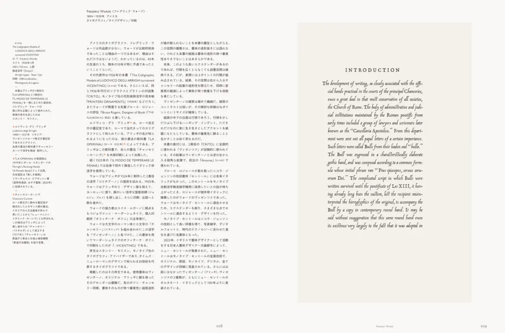 2015年の企画・構想開始から約8年、このたびようやく『組版造形 タイポグラフィ名作精選』が完成しました。近現代の欧文、和文の本文組版造形(欧文30組46点、和文28組50点)を独断と偏見で白井が選出し、論評しています。