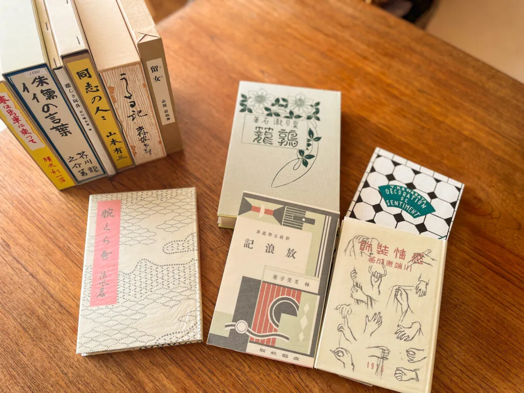 写真は個性的で美しい装丁の名著復刻本、この復刻シリーズの本も今回持ってきていただく予定です。